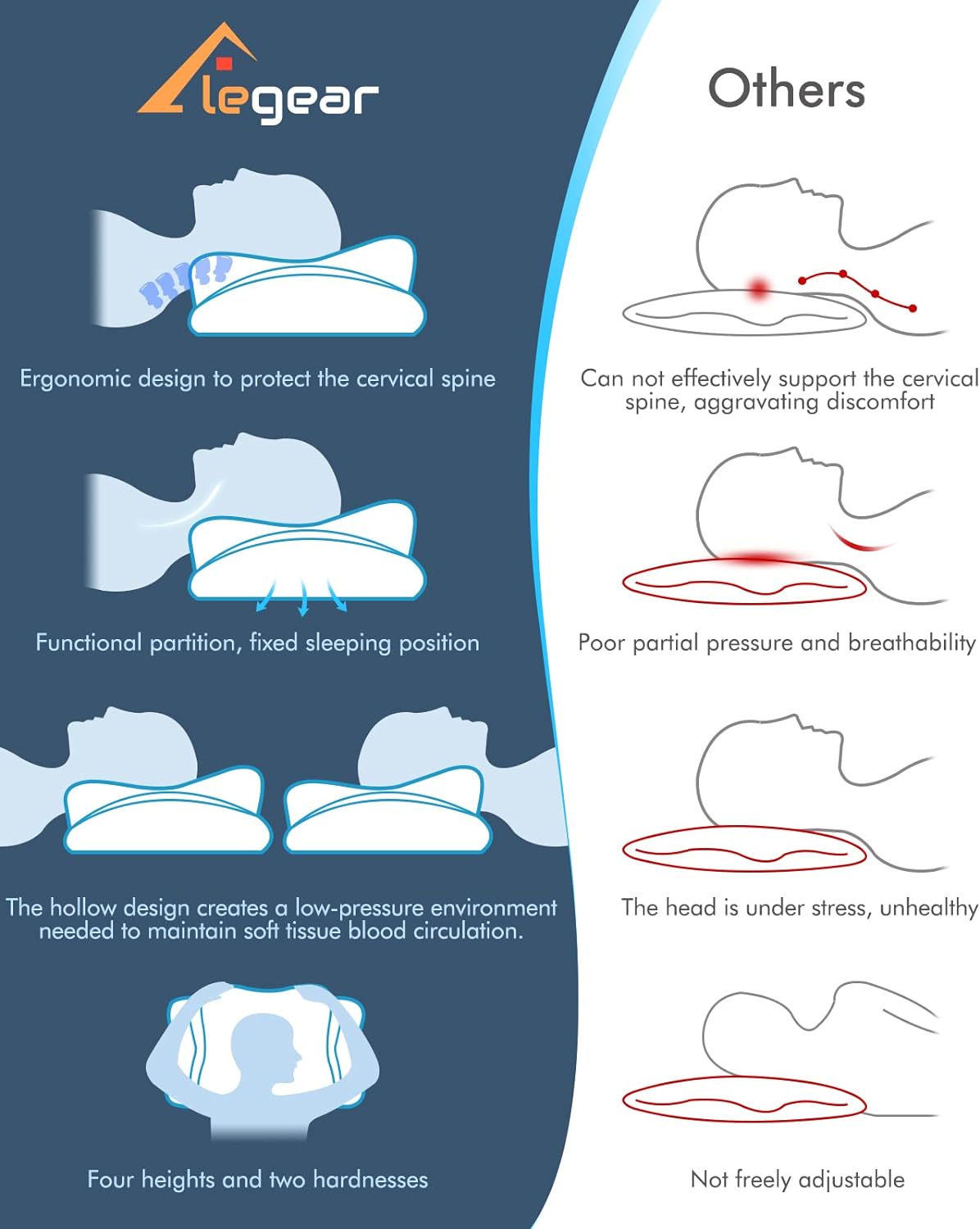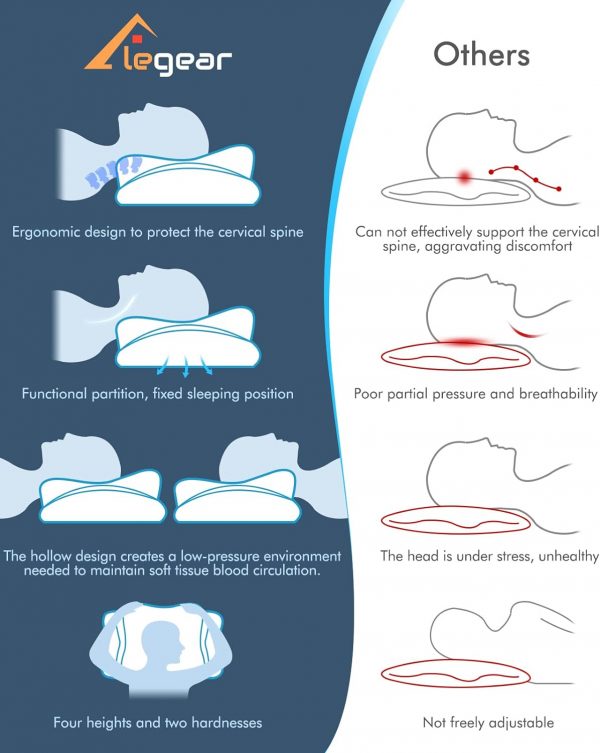 The purpose of the pillow is to maintain a suitable height for people to sleep at and prevent stress. But it’s hard to find a pillow that fits you. The Elegear cervical pillow features four functional zones with two hardness options and adjustable height. Can satisfy most people!