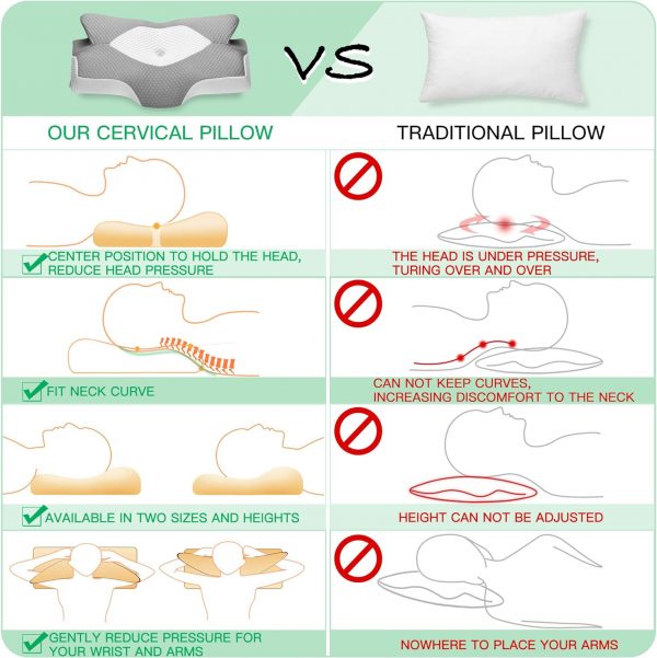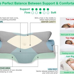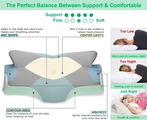 REDUCE NECK & BACK PAIN: Proven contour design perfectly supports and aligns your head, neck, shoulder, and back. The slope keeps your head from rolling out of a stable position. Bringing a reduction of stress in the cervical vertebra and spine. Improving sleep and relieving neck and shoulder pain, discomfort rejuvenating your body.