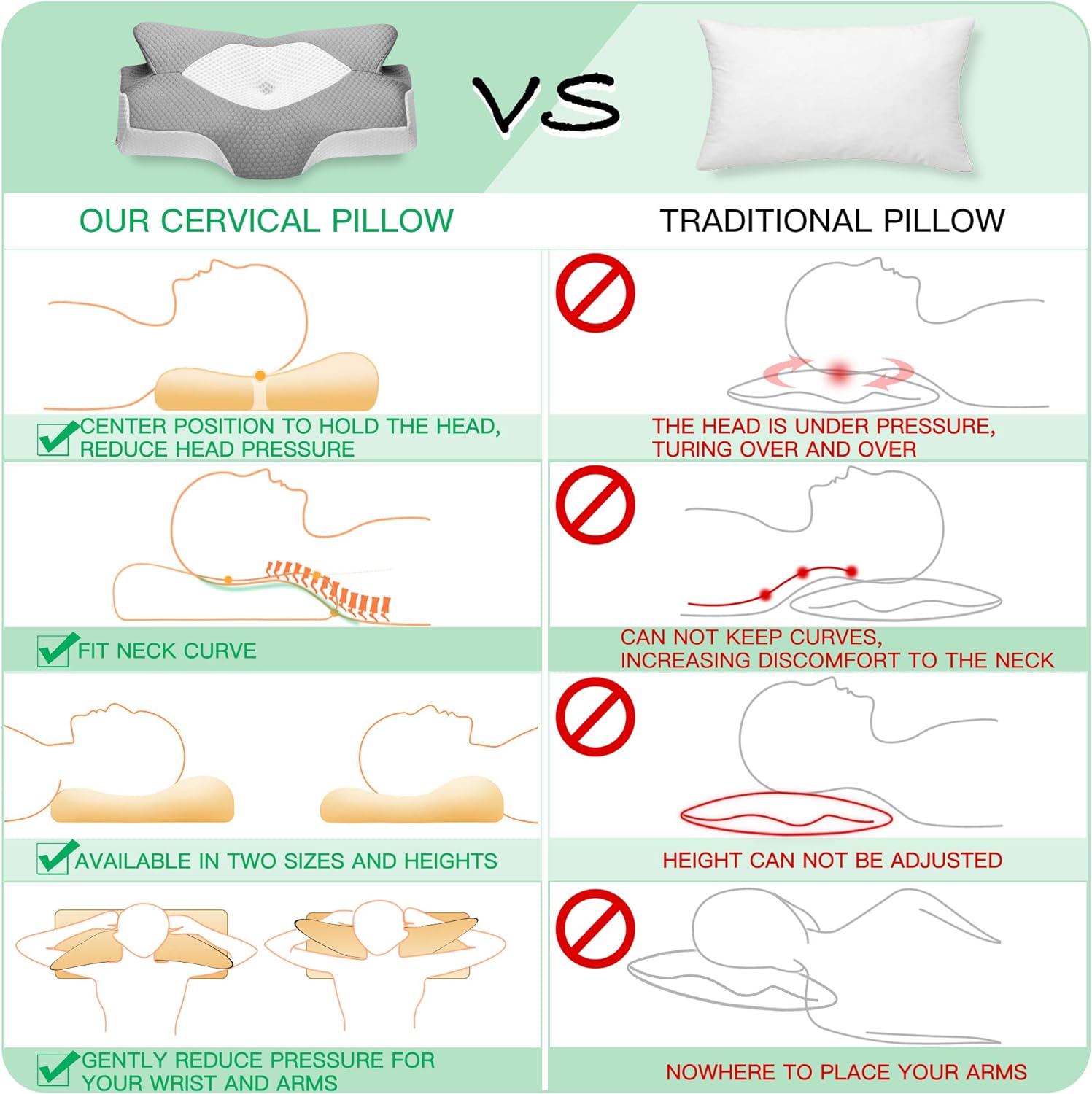 ERGONOMIC DESIGN: Elviros contour pillows are well designed to support by following the natural curve of your body keeps air passages optimal for less snoring and more restful sleep. The cutouts on the side give your top arm a place to rest and keep it at an angle so your shoulder is not hunching over in front of you.