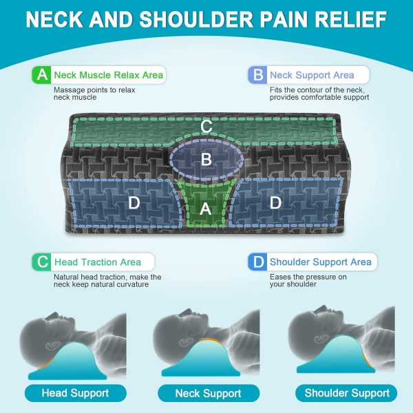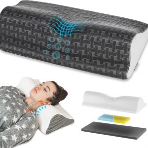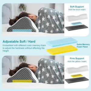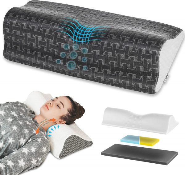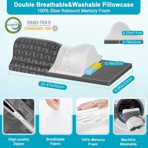 Elviros Cervical Neck Pillow, Adjustable Bolster Pillow, 2 in 1 Contour Memory Foam Pillows for Neck Pain Relief Sleeping, Orthopedic Roll Pillows for Side, Back Sleepers (Dark Grey)