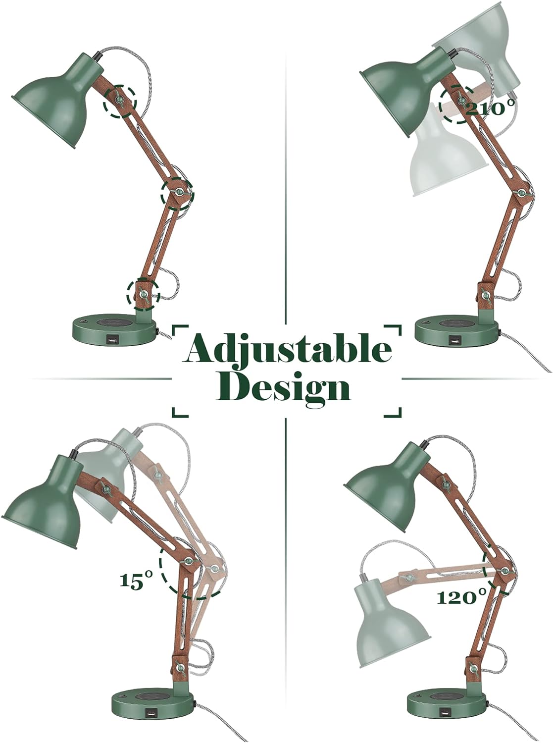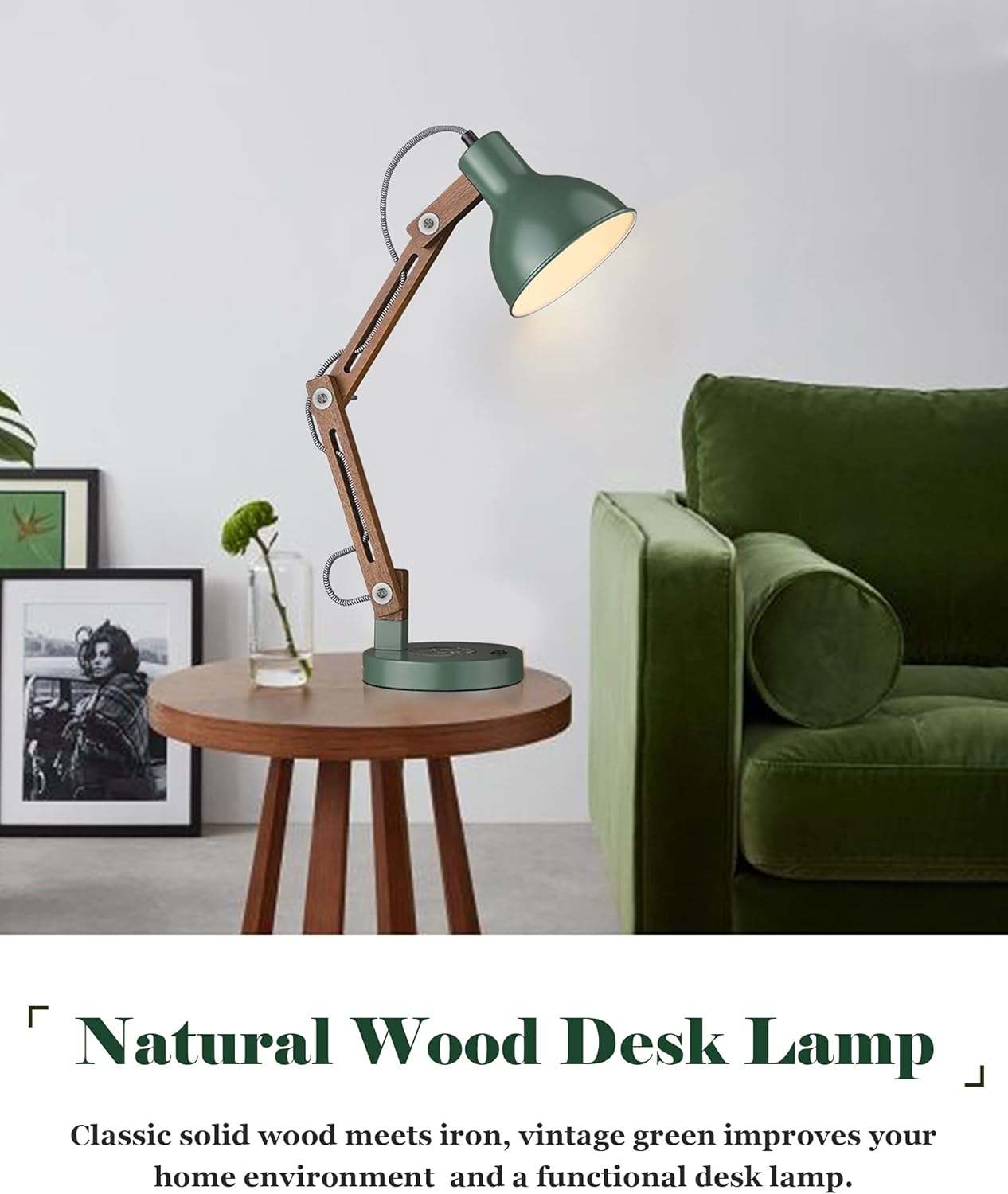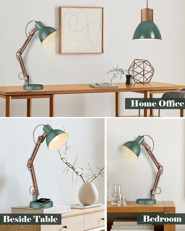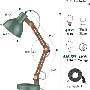 👍【 Vintage Green Desk Lamp & Maintenance】 ① Solid wood meets retro green iron, Play with nostalgic style, Let the breath of nature fill our home life. Ideal for dorm,reading room,bedroom,office.Ideal as a stylish birthday / Christmas gift for kids, teens or friends. ② Simply wipe with a damp cloth, then dry. We have been coated with mineral oil before packaging, and we still recommend coating mineral or olive oil 1-2 times 3 month to make the wood grain more textured.