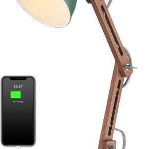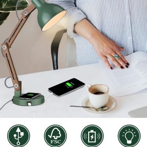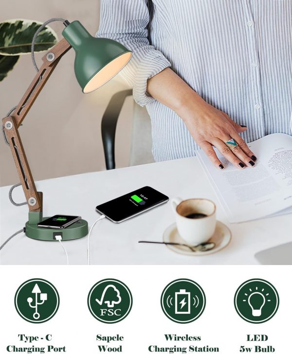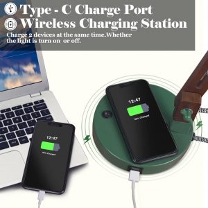 ELYONA retro green desk lamp contains a wireless charging pad and Type-C port, wireless charger is compatible with most Qi wireless enabled smartphones.