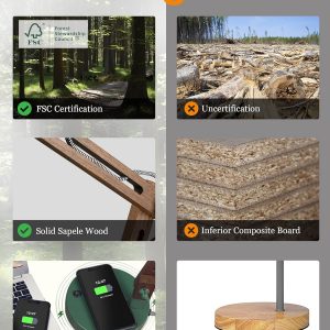 All wood used in ELYONA products has FSC Certification. Handcrafted with care using the finest quality smooth surface Sapele Wood produced in Congo pear. No Glue, Formaldehyde-free, Durable, and we also come with Waterproof Coating.