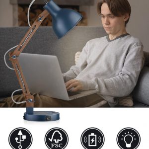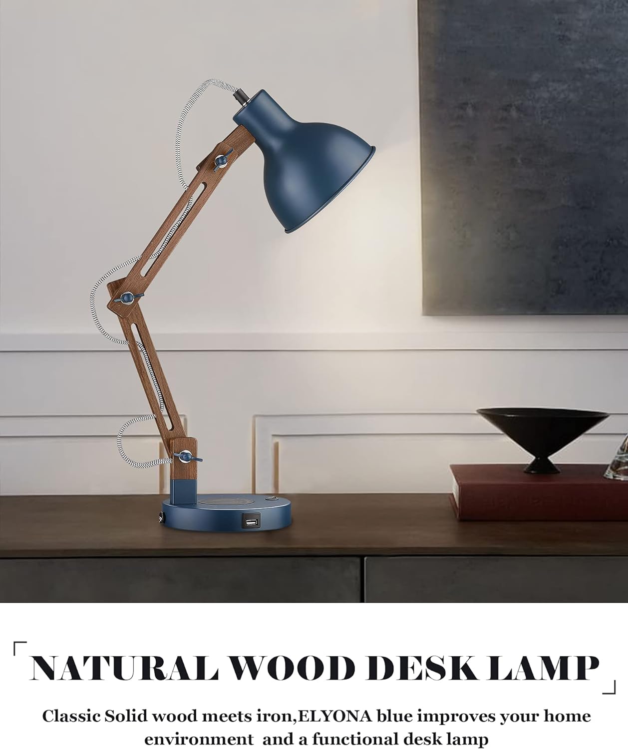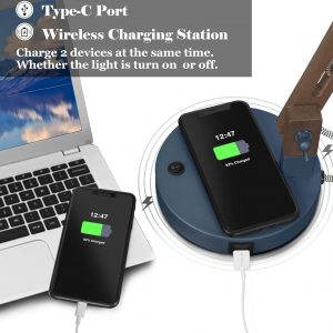ELYONA modern blue desk lamp contains a wireless charging pad and Type-C port, wireless charger is compatible with most Qi wireless enabled smartphones.