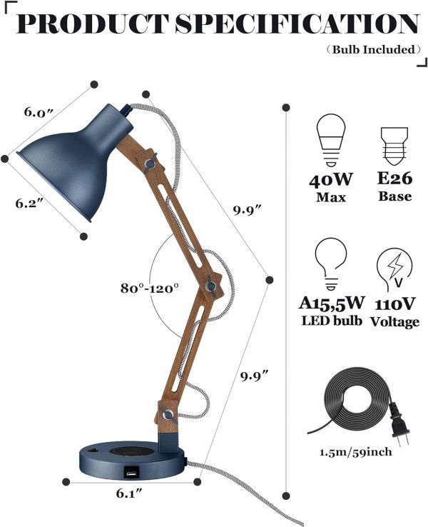 👍【Upgraded Function – Flexible Adjustment & Space Saving】 After repeated attempts, it has been adjusted to a suitable tightness and will not fall easily. which can provide more flexible illumination, and the lamp has a large illumination area. You can direct the light wherever you need it most. The foldable lamp head saves space, you can carry it for study work at any time, in the dorm, office or other places. ❥(If you have any queries, please CONTACT US via Amazon message box. )