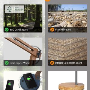 All wood used in ELYONA products has FSC Certification. Handcrafted with care using the finest quality smooth surface Sapele Wood produced in Congo pear. No Glue, Formaldehyde-free, Durable, and we also come with Waterproof Coating.