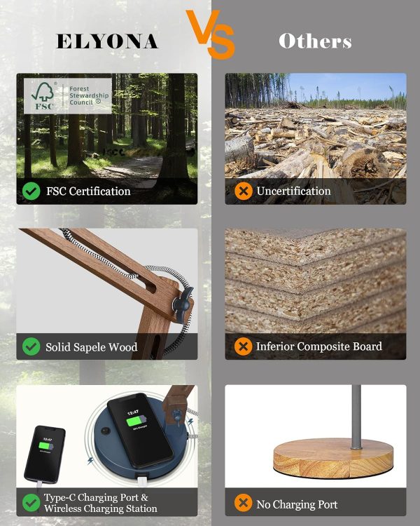👍【 FSC Certified Sapele Wood 】①Unlike fiberboard’s wood grain paper surface and is glued with unknown woodchips inside. ELYONA desk lamp made of Sapele Wood produced in Congo pear. Free of glue, formaldehyde. Natural real wood create healthy living spaces for your family and pets. ②Premium Nylon Braided Cable means you’ll be enjoying the lamp for years. ③ELYONA’s wood has FSC Certification which represents that the timber used is following the strict environmental standards of FSC.