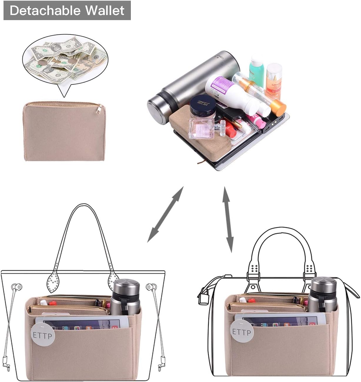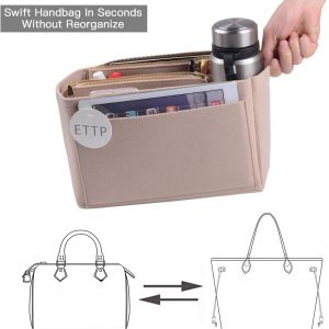 Medium Organizer Approx. 9.25(W)*5.9(H)*5.1(D)inch Fits Speedy 25 & 30 (Slouchy Style Preference),Noe GM & Le pliage Shoulder Bag S, BK30, Alam PM and Marc Jacobs Tote MIni.