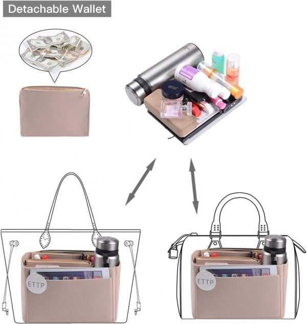Large Organizer Approx. 11.4(W)*7.1(H) *5.9(D)inch Fit Speedy 35 and Neverfull MM Perfectly and Fits Speedy 30 (Shaping Style Preference), Artsy MM & Book Tote Small & Le piage Shoulder Bag L/ Top Handle M