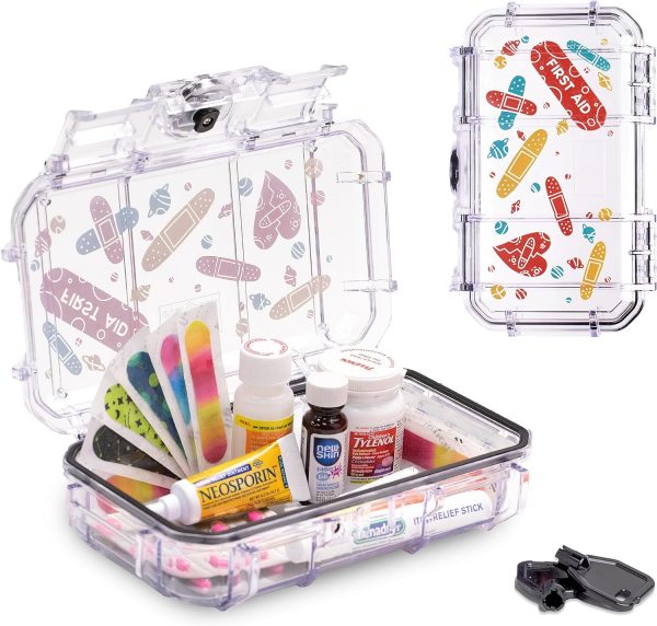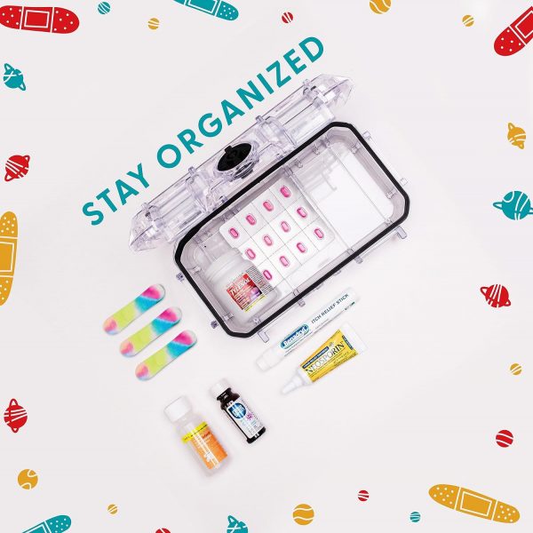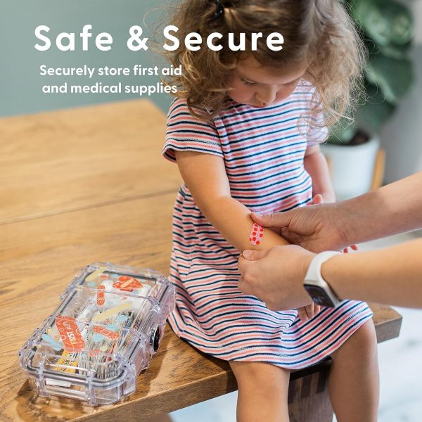 Evergreen X Seahorse 56 Medication Lock Box – Medium, First Aid Kit, Childproof, Empty Lockable Medicine Box to Store Medications, Diabetic Supplies. NO SUPPLIES INCLUDED (Clear + Bandaid)