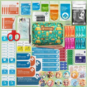 A: With exclusive designs on the bag and bandages, engaging games featured in our kid’s first aid manual, and rewards like Bravery Patch Stickers, the Rescue Pack transforms first aid into a positive and fun part of the travel adventure.