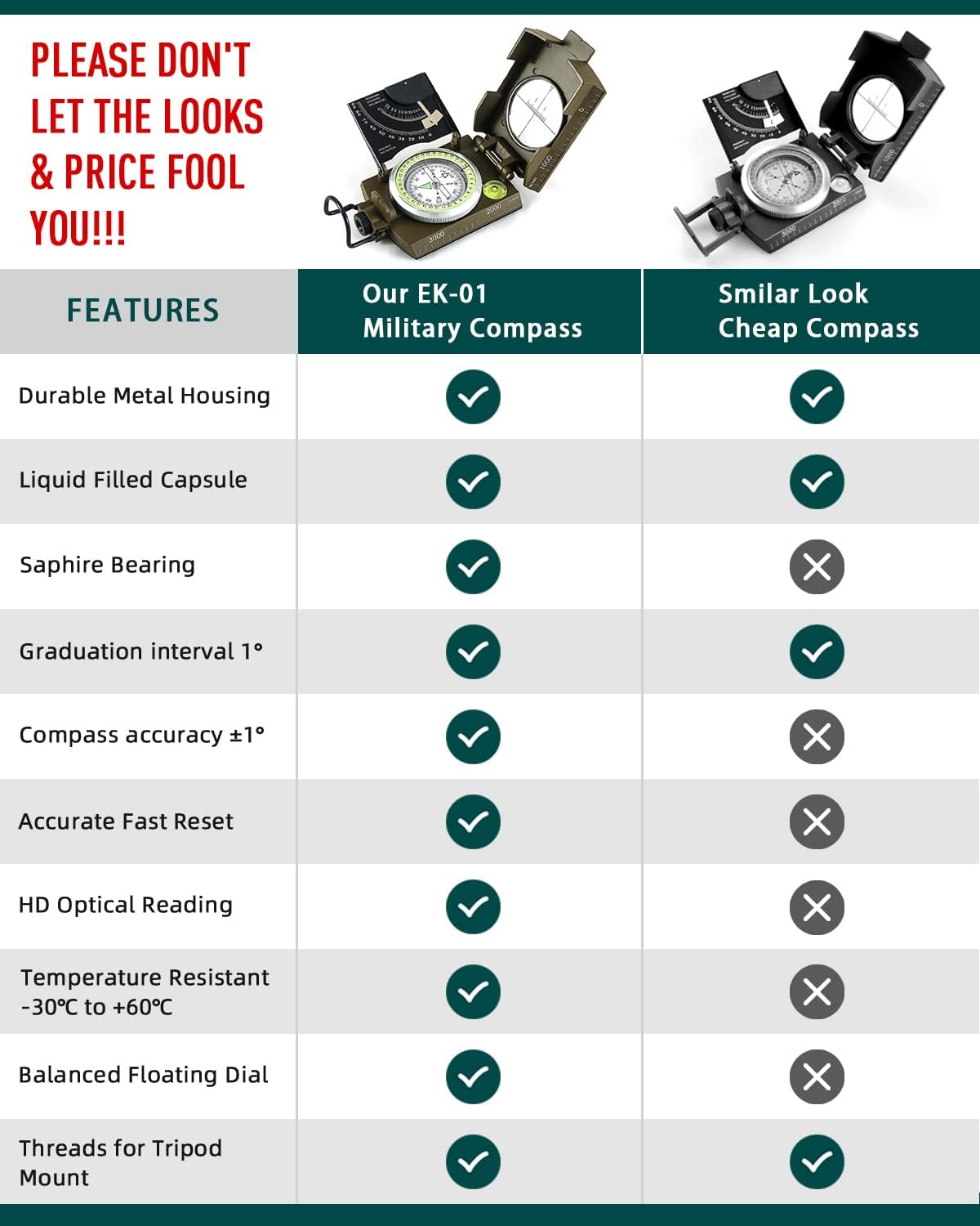 ✔️OTHER IMPRESSIVE FEATURES – You can align objects in the distance with the sighting hairline, it also has an adjustable diopter sighting lens, a rotating bezel ring, and a measurement conversion chart, it comes with a strong canvas pouch and lanyard and can be mounted on a tripod.