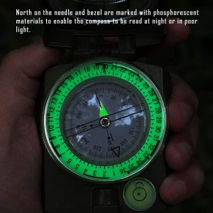 ALLOW FOR CLEAR READING AT NIGHT – When exposed to enough light, the north arrow and display light up in the dark with fluorescent light, allowing you to see the reading if it is pitch black.