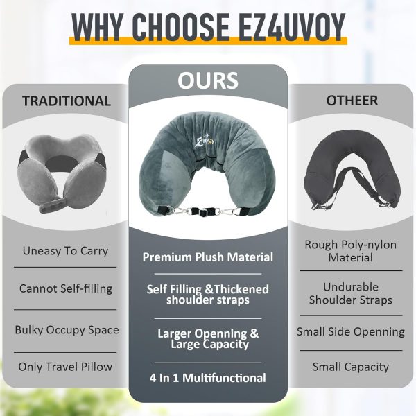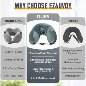 Your Versatile Companion for Every Journey – Whether you’re unwinding under the starlit sky of a remote campsite, trekking through emerald trails, cruising along the coastal highways for a road trip, or to the cobblestone streets of ancient cities, fillable neck pillows is the trusty sidekick for every adventure. Not just a pillow but a passport to packing perfection, ensuring your journey is as smooth as the slide of its durable zipper.