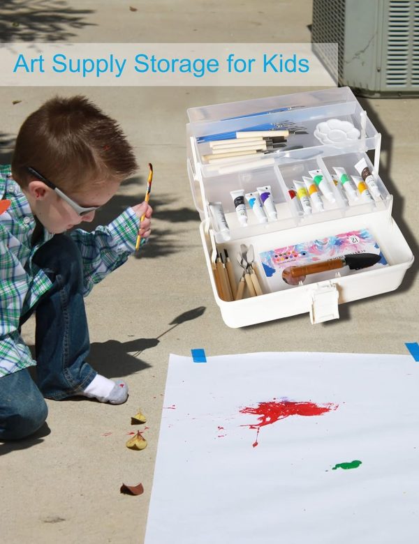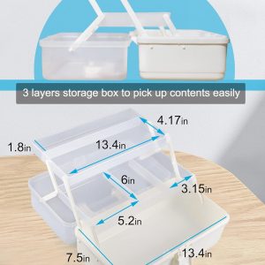 Facikono Craft Art Box Tackle Box Organizers Sewing Box 3 Layer Craft Storage Box White Tackle Box Hair Supply Organization Box Medication Organizer Plastic Tool Box