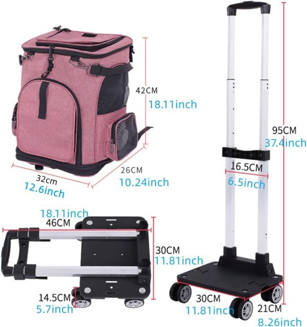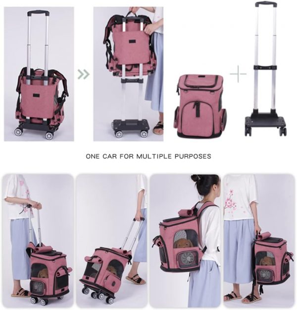 3 in 1 Multifunctional Pet Carrier: It can be used as a backpack, handbag, and rolling carrier, utility cart. Detachable design, remove the bag and it becomes a lightweight dolly capable.