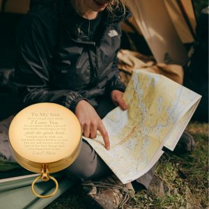 【Christmas Stocking Stuffers for Son】 This camping compass for son engraved with words: To My Son Never forget how much I love you. As you grow older, you will face many challenges in life, just do your best. I might not be with you, but know that I believe in you. You are and always will be, one of the best things. It can be stocking stuffers for son, christmas gift for son, son christmas gift, stocking stuffers for teen boys. You can send it to your son, stepson.