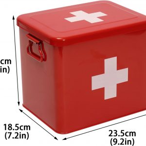 5. First Aid Box Dimension – It sized at 23.5 x 18.5 x 18 cm / 9.2″ x 7.2″ x 7″ (LxWxH). This first aid bin can hold the medicine essentials which meet your daily needs and helps you take better care of you and your families.
