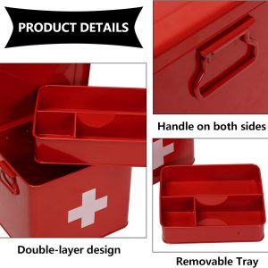 Our Xbopetda metal first aid box includes a removable top tray and separated bottom compartments to store various types of items.