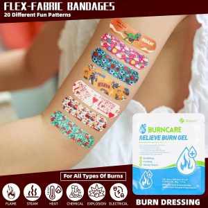 🌈【COLORING YOUR BOOBOOS】- The kit contains 20pcs soft flexible fabric bandaids in 20 different fun patterns. The fabric allows it to breathe and flex with movement keeping booboos clean. They stay on so much longer than others, even when they get wet. With these Flex Fabric bandages, you can have them on for a very long time and not have any sort of reaction.