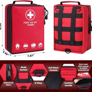🚗【PORTABLE AND FUNCTIONAL 】- 7.87″x3.94″x10.24″ Compact size. Made with MOLLE compatible straps system. Features D-rings so it can be attached to almost any surface. It’s easy to carry that fits anywhere in your car, truck, RV, yacht, boat, kayak, bicycles or motorcycle. Perfect for travel trailers, home, workplace, outdoor, businesses, office, school, dorm room, boat, vehicles, camping, hiking, backpacking, survival, fishing, kids sporting teams, golf, small groups, emergency essentials preparedness kit, and on the go use.