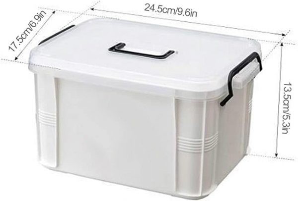 Bullet points:Classified storage: The box has a built-in partition, which is easy to sort and store scattered medicines and easier to find.With cover: The transparent cover is set so that the built-in medicine can be clearly seen.More sealed: Buckle design on both sides, not easy to get wet.Portable: Hand-held design, easy to move.Plastic material: PP material, not easy to age, strong and durable.Description:Size: about 24.5 * 17.5 * 13.5CM / 9.64 * 6.88 * 5.31 inMaterial: PPNotice:Contains no medicines.Package includes:1 * Medicine BoxPackage Including1 * Medicine Box