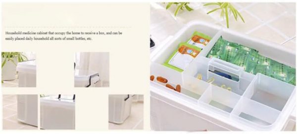 Easy to take and keep your essentials clear organized. Ideal for home, schools,office,medical facilities, outdoor traveling,etc. This first aid box can be used to store food, make up, stationeries, etc. Its suitable for home, car, school, gymnasium, workplace, travel, camping, office.