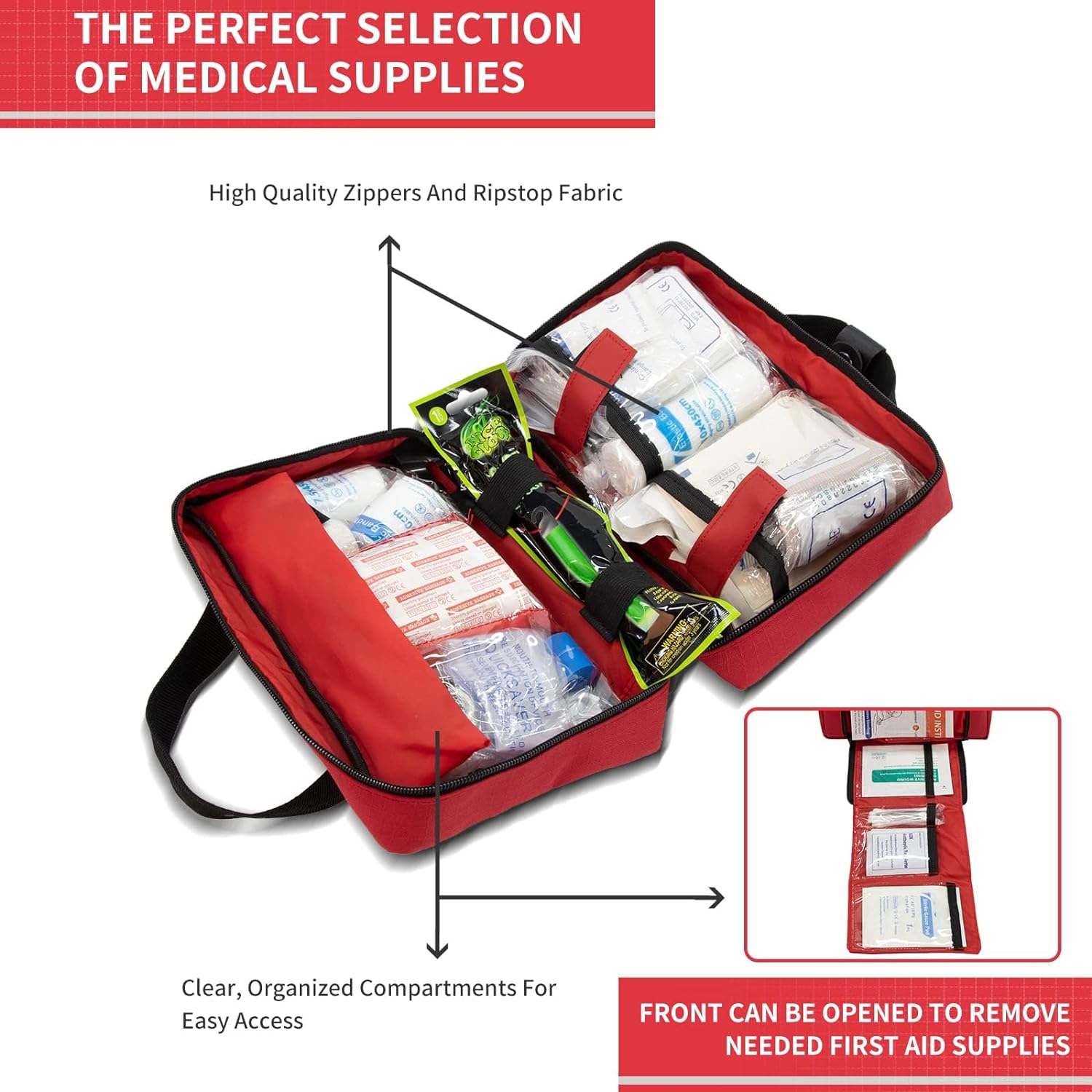 218 Piece Red Emergency Trauma Kit for Home, Travel, Camping, Hiking