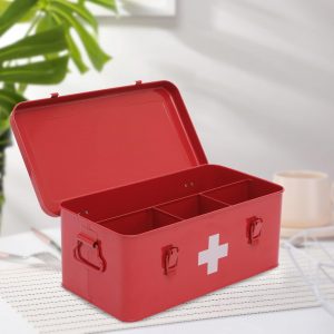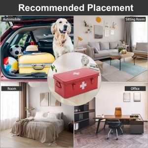 3. Safety Lock Design: This red medicine box with white cross is designed with a child safety lock to prevent children and pets from taking medicines by mistake. This first aid bin can hold the medicine essentials which meet your daily needs and helps you take better care of you and your families.