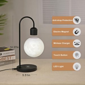 Levitating Moon Lamp Magnetic Led Desk Light Bulb with LED Floating Ball & Wireless Phone Charger