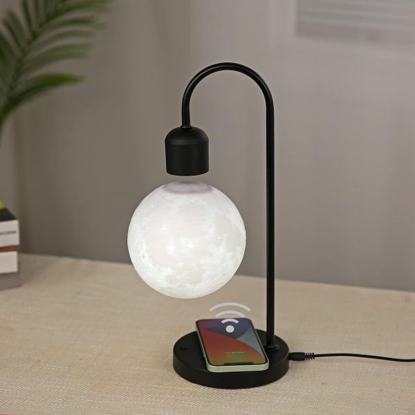his magnet moon lamp features a built-in wireless charger for phones with wireless charging functions.