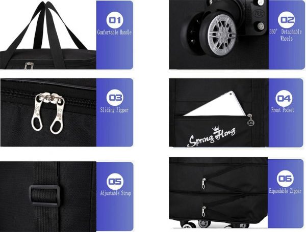 【Foldable Design】When needed, just open the zipper and the shopping bag can be stretched. The handle of the trolley bag is non-, which is convenient to grasp. Take more items out of the , carry heavy food when outdoors, and the shopping bags on wheels are portable no matter where you go. When you don’t use the shopping cart, it can be easily folded and stored compactly. It can be put in the trunk, under the bed, closet or garage.