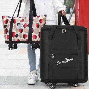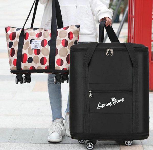 【Reusable Use】Foldable shopping tote bag, not only can be carried, hung on the shoulder or dragged heavy items walking, also can be used in the supermarket or daily shopping reusable shopping cart Used in.