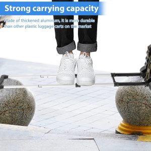 【Strong Bearing Capacity, Strong & Durable】: The folding hand truck is constructed of high-quality tough aluminum alloy with a wall thickness of 0.95mm, which is more durable than other plastic luggage carts on the market. Holds high capacity and doesn’t wobble easily when pulled. Reliable and durable. Stable large chassis, even when pulling heavy goods, it is as stable as Mount Tai.