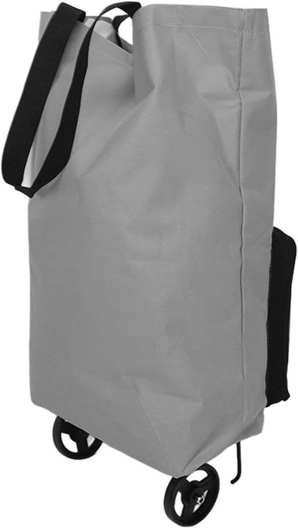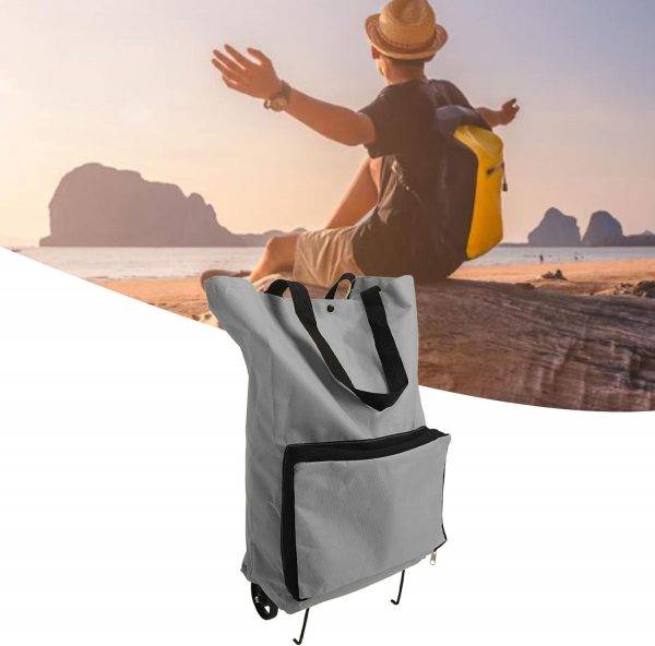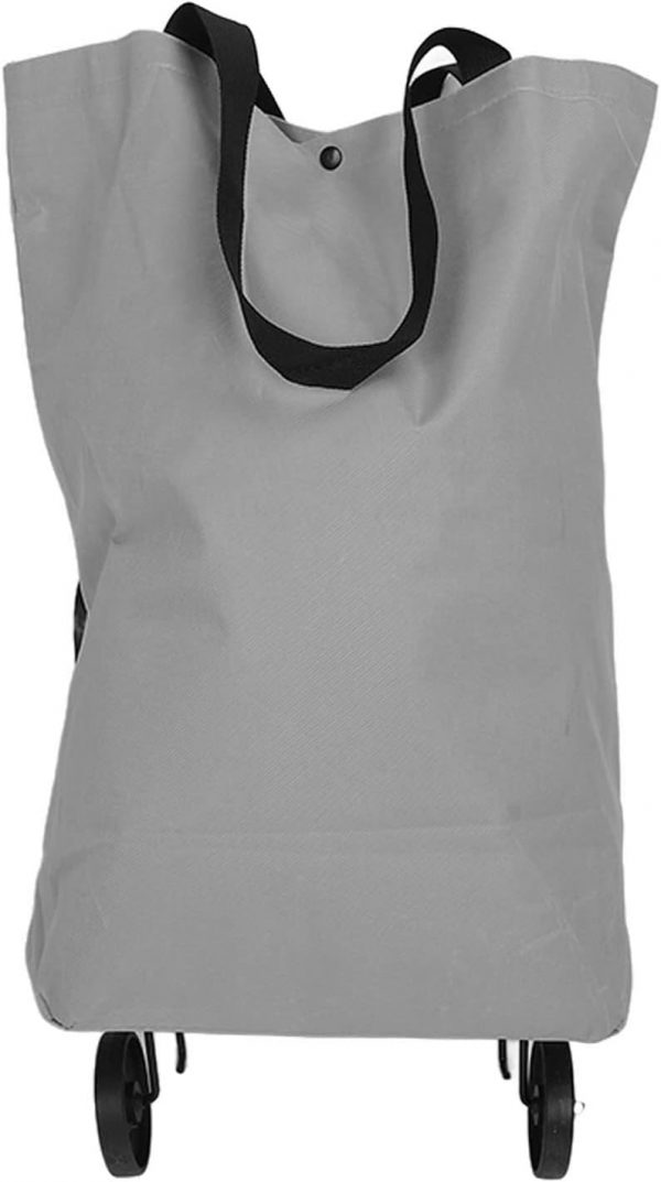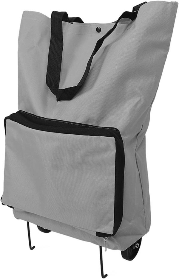 STURDY DESIGN: The bottom is sturdy board with foldable wheels, it is strong enough. When you need it, just open the zipper and the shopping bag will stretch out.