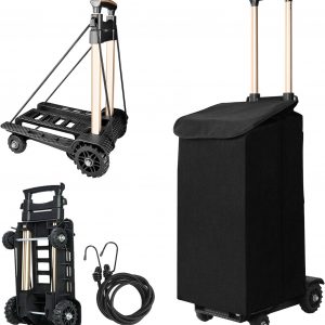 【Wide Usability】This collapsible shopping dolly cart with removable waterproof bag is a very useful tool to transport different items on the go, helping you carry the grocery stuff from one place to another with less required manual effort, perfect for moving, shopping, travelling, delivering, airport, station, students, etc. And also the two extra bungee cord can help you carry more item in a stable way. Note: If any questions, pls feel free to contact us, we will try our best to help you.