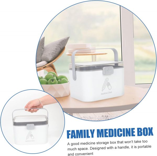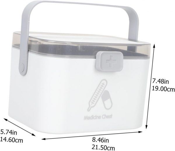-Size:21.50X19.00X14.60cm/8.45X7.47X5 family use medicine box.