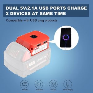 ⭐【 DUAL USB & DC OUTPUT】—— This item for milwaukee tools with 5V/2.0A USB port can provide quick charging for your phones or other electronics devices, such as fans or lighting fixtures, and soldering equipment. 12V/2A DC port for Milwaukee Heated Jacket or other emergency use.