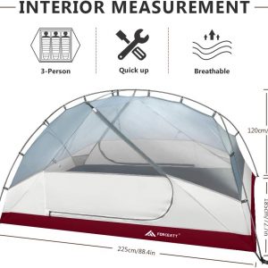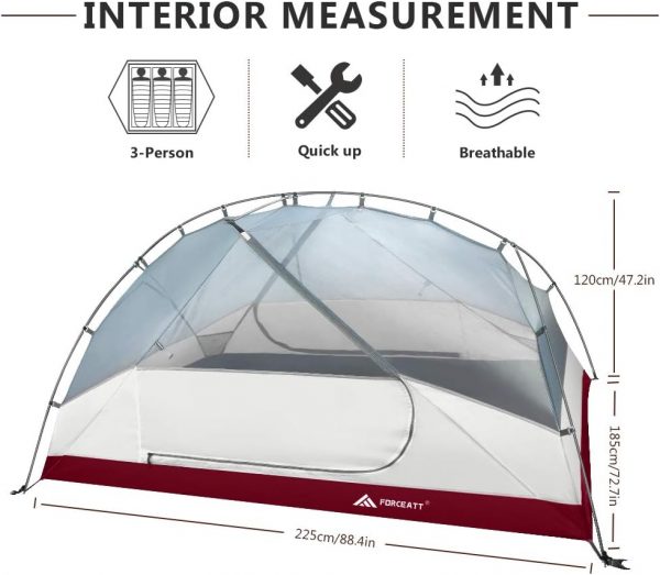 👍【Tents For Camping 2 Person】: With two D-Shaped doors and two vestibules to accommodate up to two people. Weight: 5.5lb(2.5kg). Interior floor dimensions: 88.6×53.1in(225x135cm), interior height: 43.3in(110cm).