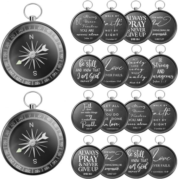 Features: The keychain compass can be applied in various occasions, such as camping, hiking, boating, travel and other outdoor activities, providing much convenience for you. The pocket compass adopts exquisite workmanship and delicate appearance, not easy to break, deform or fade, will be a nice accessory for camping and boating lover. Specifications: Main material: aluminum alloy Main color: black Size: about 2.36 x 1.73 x 0.39 inches/ 6 x 4.4 x 1 cm Package includes: 50 x Quote engraved compass Notes: Manual measurement, please allow slight errors on size. The color may exist a slight difference due to different screen displays. The words on the product are only for decoration, not as trademark, our trademark is Fumete.
