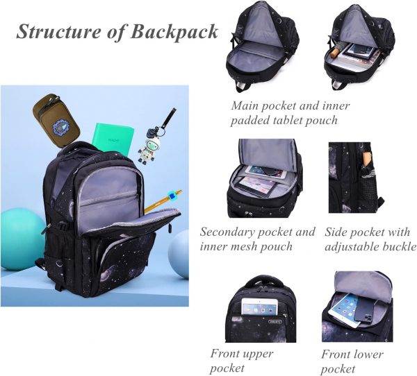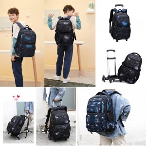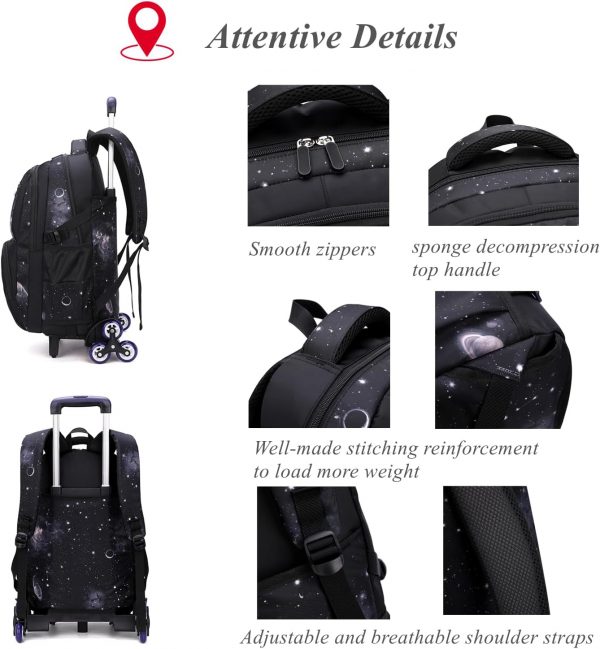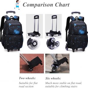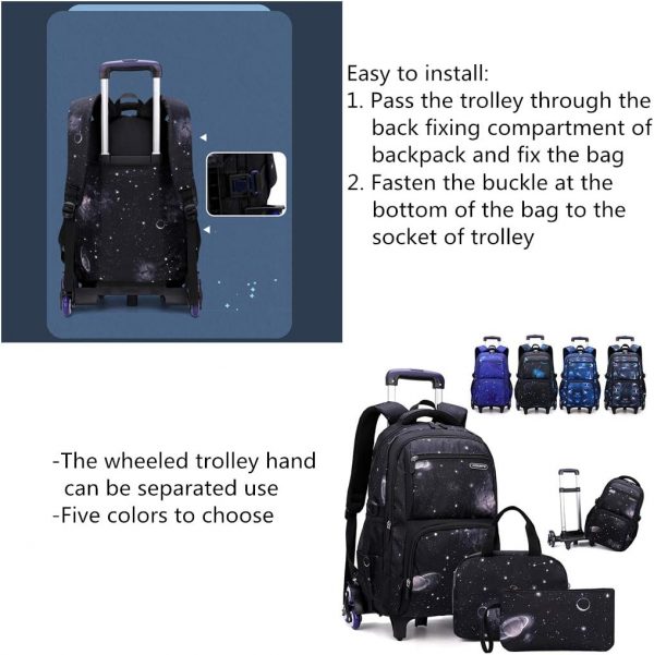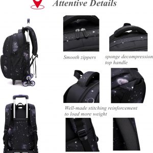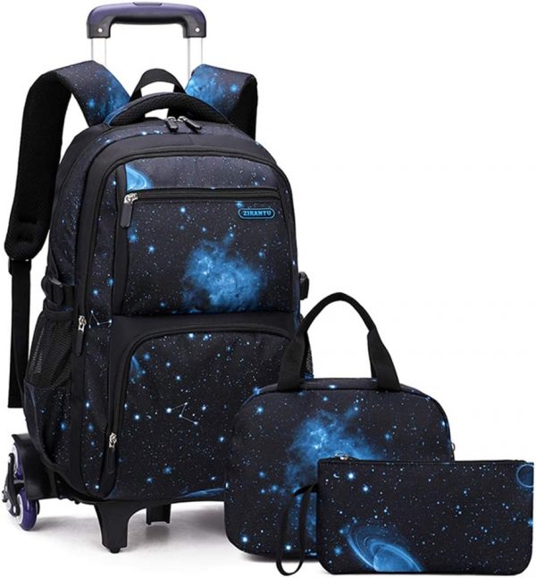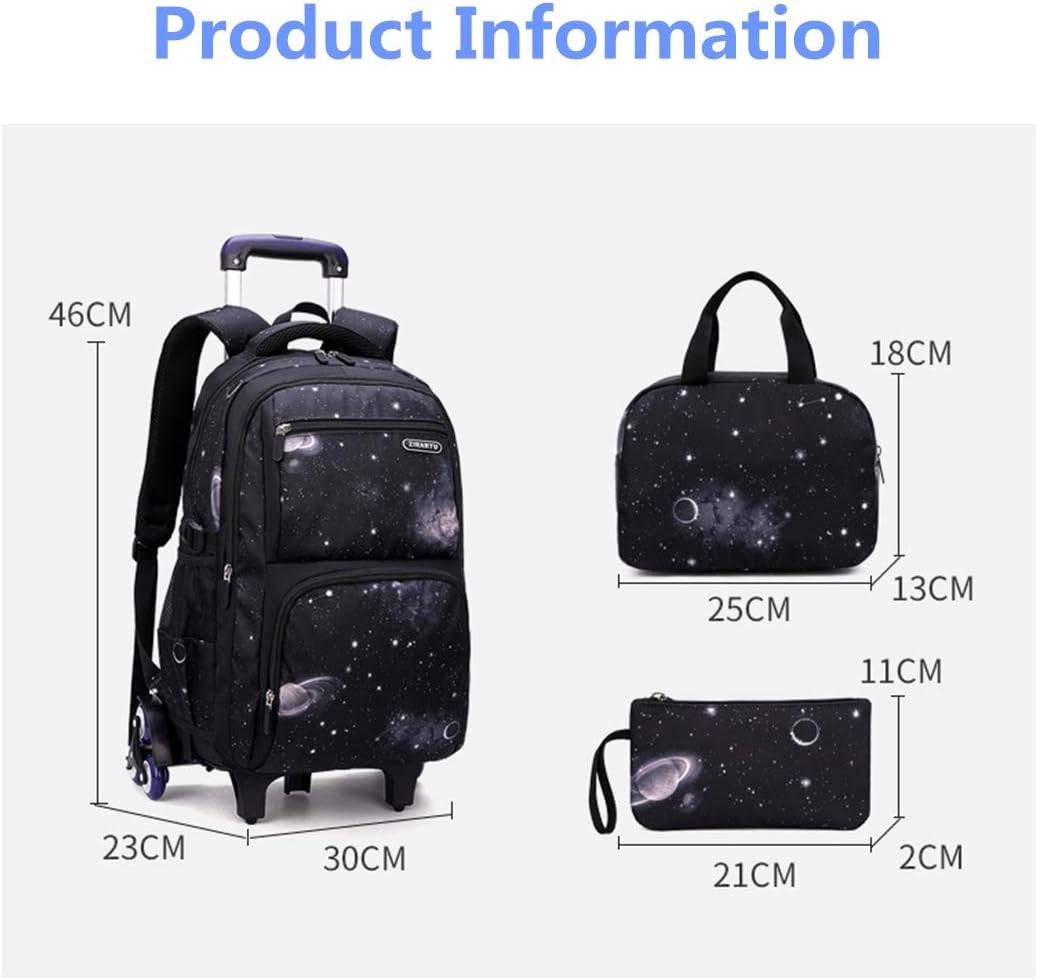 Galaxy-Print Rolling-Backpack Boys-Bookbag on Wheels with Lunch Bag, Galaxy Wheel Backpack, Wheel Trolley Bag for School
