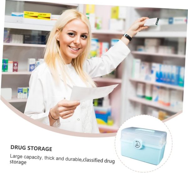 – Portable handle is convenient to move and carry it around medicine box storage.