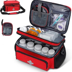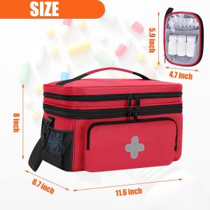 【Dimensions】:11.8″ * 8″ * 6.7″, with top handle and shoulder strap, easy to carry when going out and traveling, it’s a wonderful medicine bag for traveling