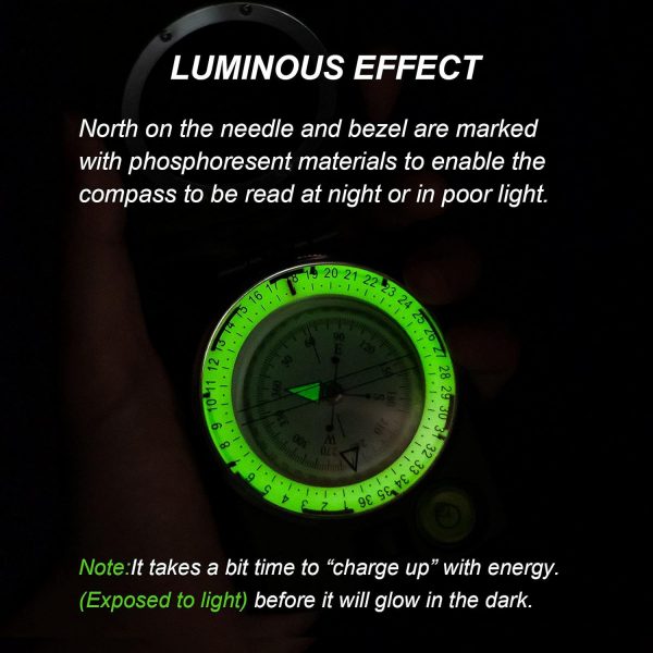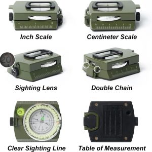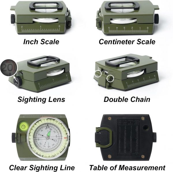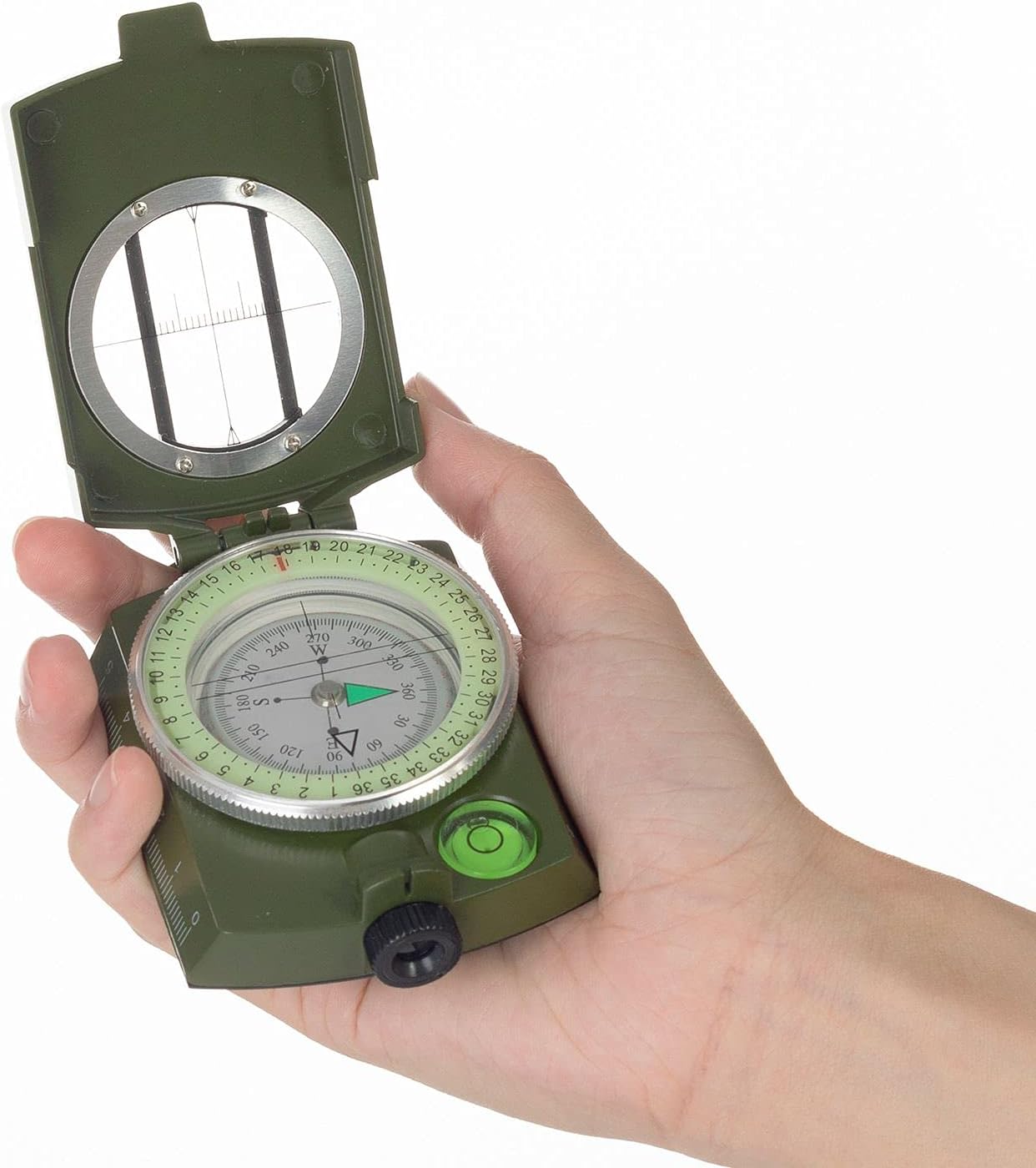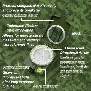 Professional Compass: This professional grade military compass will always lead you in the right direction. Suitable for motoring, boating, camping, mountaineering, exploring, hunting, and other outdoor activities.