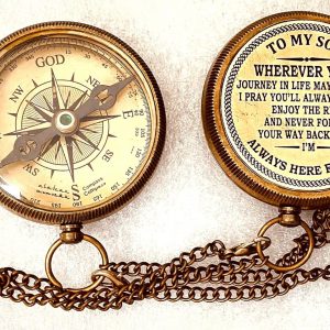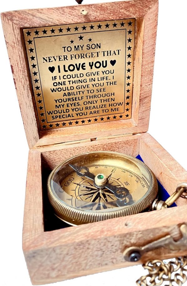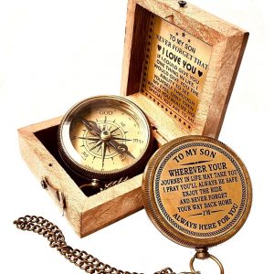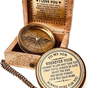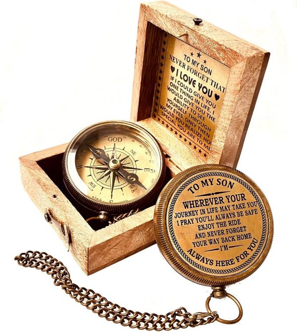 Gift for Son from Mom / Dad – Engraved Compass with reassuring Father Son Love Quote Engraved on Top Lid makes it a perfect Inspirational gifts for son from Father. A reassuring motivational gift for son ensuring that You will Always be There for Your Son.