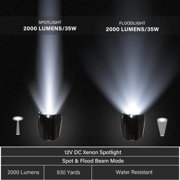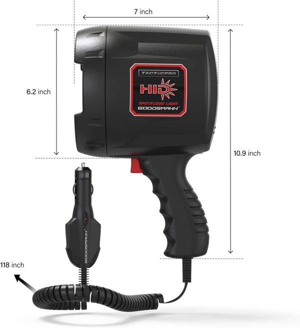 Versatile Lighting at Your Fingertips – Enjoy the freedom to switch between spotlight and floodlight modes effortlessly with our handheld light. Simply hold the trigger on the pistol-grip, and watch as the light transforms to suit your needs. Illuminate your world like never before with our HID handheld light. Its versatility, power, and comfortable light temperature will elevate your outdoor experiences. Don’t miss out on this essential tool for all your adventures