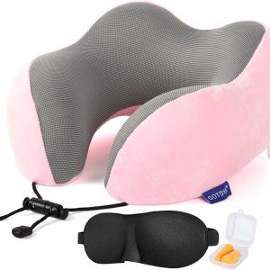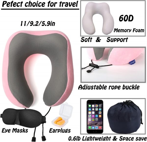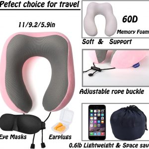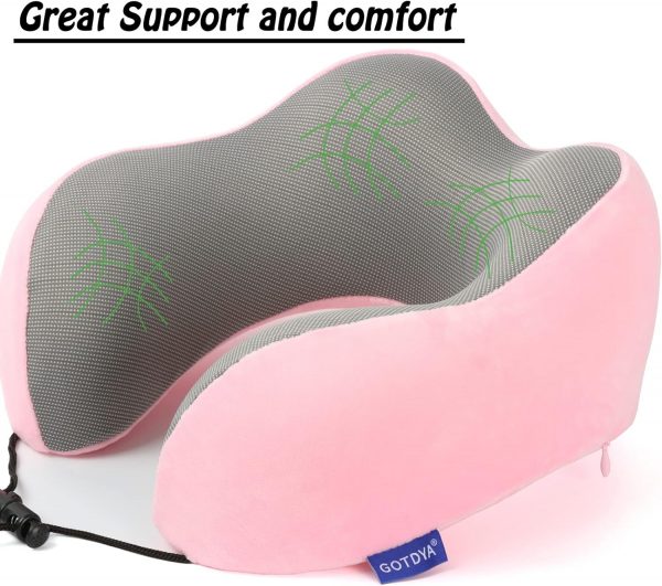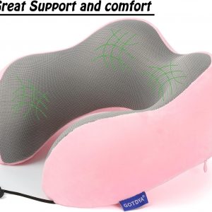 GOTDYA Travel Pillow,Travel Neck Pillows for Sleeping,100% Pure Memory Foam Soft Comfort & Support Pillow for Airplane/Car/Office&Home Rest Use-Pink