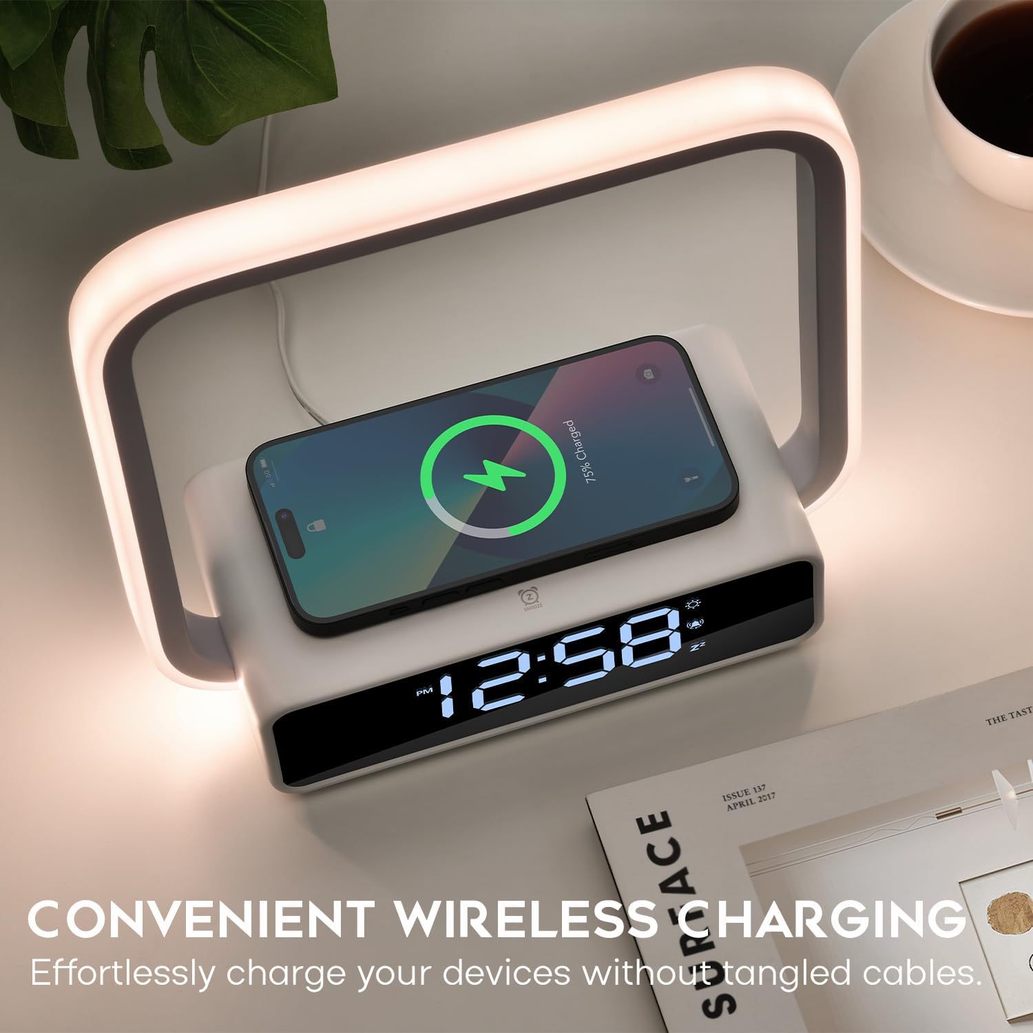 【ALARM CLOCK LAMP WITH ONE-TOUCH SNOOZE】- Start your day gently with smart alarm clock. With its intuitive design, you can easily set your desired wake-up time and activate the alarm. When the alarm goes off, simply press down gently to activate the convenient one-touch snooze function, granting you an extra 10 minutes of blissful sleep. Cute bedside lamps ensures a smooth transition from sleep to wakefulness, offering you a cozy and relaxed waking experience.