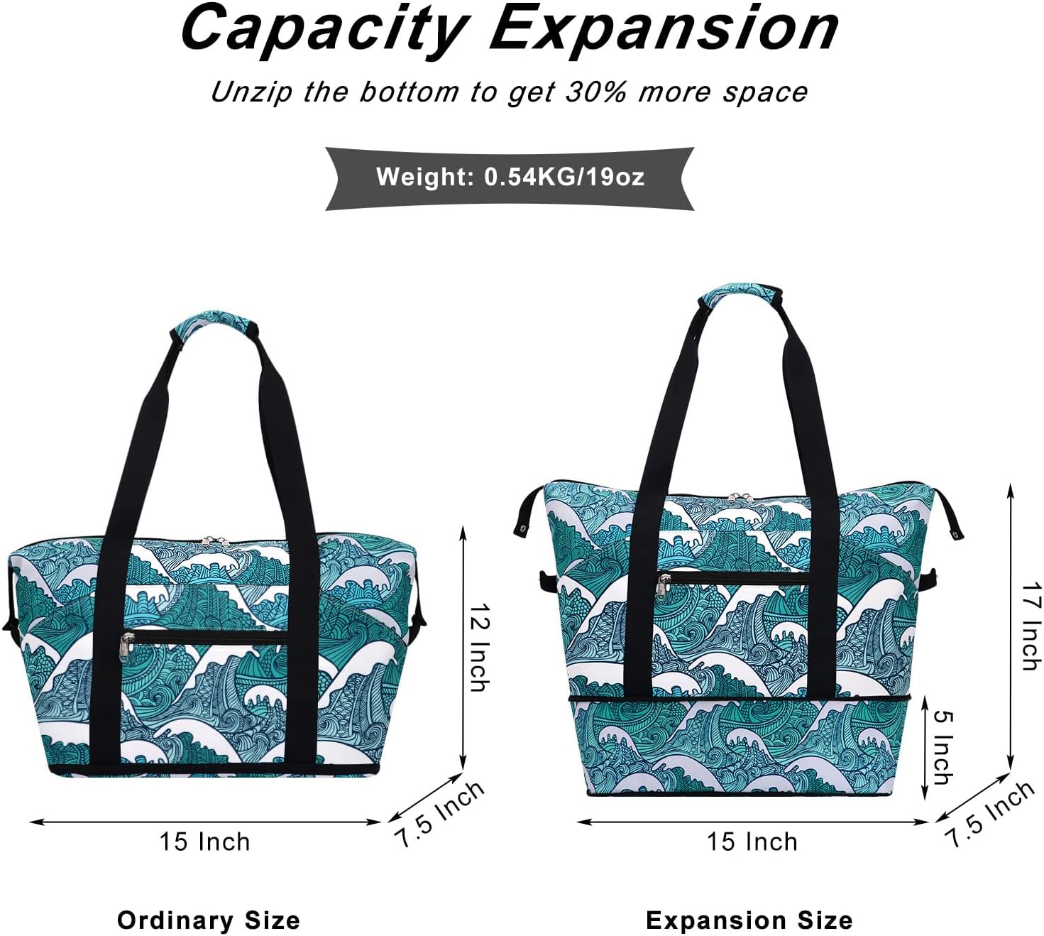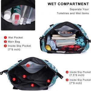 Expand the bag for more extra space if needed This travel bags for women and men is expandable to increase or decrease your luggage more freely and reduce your travel burden. It’s roomy enough to hold 3 to 4 days worth of clothes, toiletries, shoes, cosmetics, iPad and other personal items.Carry on Bags for Airplanes with Luggage Sleeve By simply sliding the trolley sleeve over the handle of your suitcase, you can easily navigate through airports or train stations without having to physically carry the tote bag.Wet Bag for Travel Convenience Keeping wet or soiled items such as swimsuits, towels, or toiletries separate from the rest of your belongings.Two-way Zippers for Easy Access Our overnight bag for women has premium double-headed zippers which can open the bag from either end and make it easier to retrieve items or organize your belongings.Multiple Scenes for Women and Men HAWEE duffel bag is suitable for indoor and outdoor activities, such as travel, workout, weekend trip, overnight accommodation, beach vacation, camping, dancing, yoga and other activities. It’s a perfect choice as travel duffel bag, weekender bag, overnight bag, gym bag, beach bag, carry-on bag, mommy diaper bag, hospital bag for labor and delivery, travel holdall bag or gym holdall.