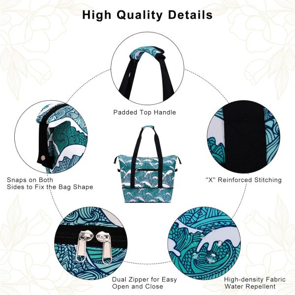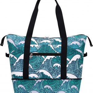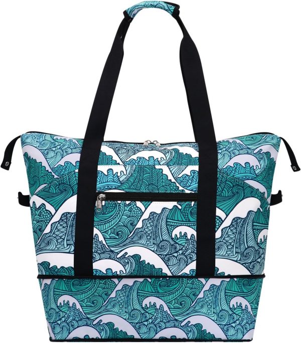 Wet pocket could hold your swimsuits on beach/ wash supplies on travel/ yoga clothes in gym;The fabric is water repellent and sand prevention to keep items inside dry and clean;Hold clothes, toys, iPad, drinks and snacks, sun block in one bag;Big enough for the whole fimily items;10 seperated pockets for different items;Vibrant colors and patterns that stand out in a crowd.